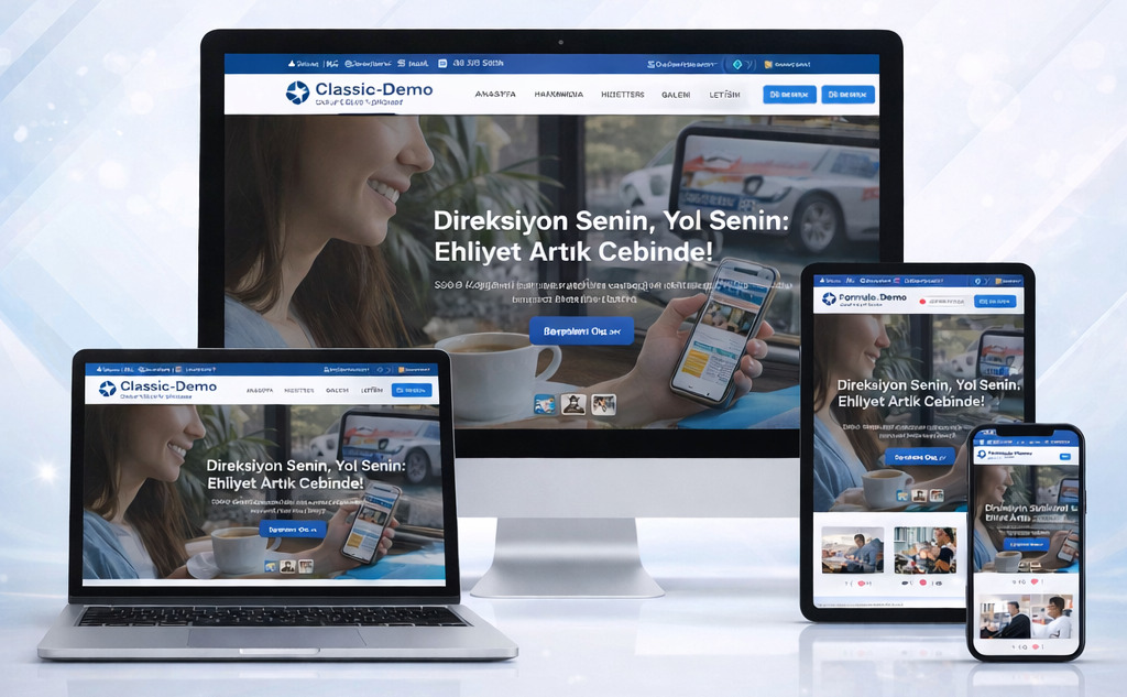 EhliyetPlus olarak, sürücü kurslarının hem web sitesi hem de mobil uygulama altyapısını anahtar teslim şekilde sunuyoruz. Satın alma sürecinden yayına almaya kadar tüm adımları sizin yerinize yönetiyoruz.